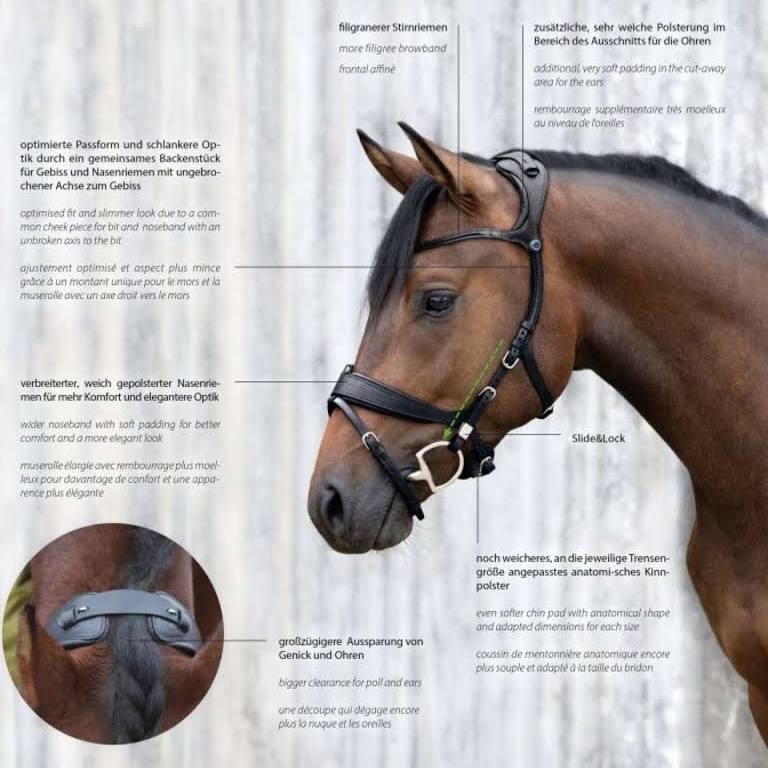 Dit Freedom 2 Stuebben hoofdstel is echt wat bijzonders. Ik merk dat het vooral geschikt is bij paarden met problemen rond het kaakgewricht, paarden die asymmetrisch zijn achter de oren en paarden die ontzettend veel manen hebben waardoor een regulier kopstuk snel kantelt.